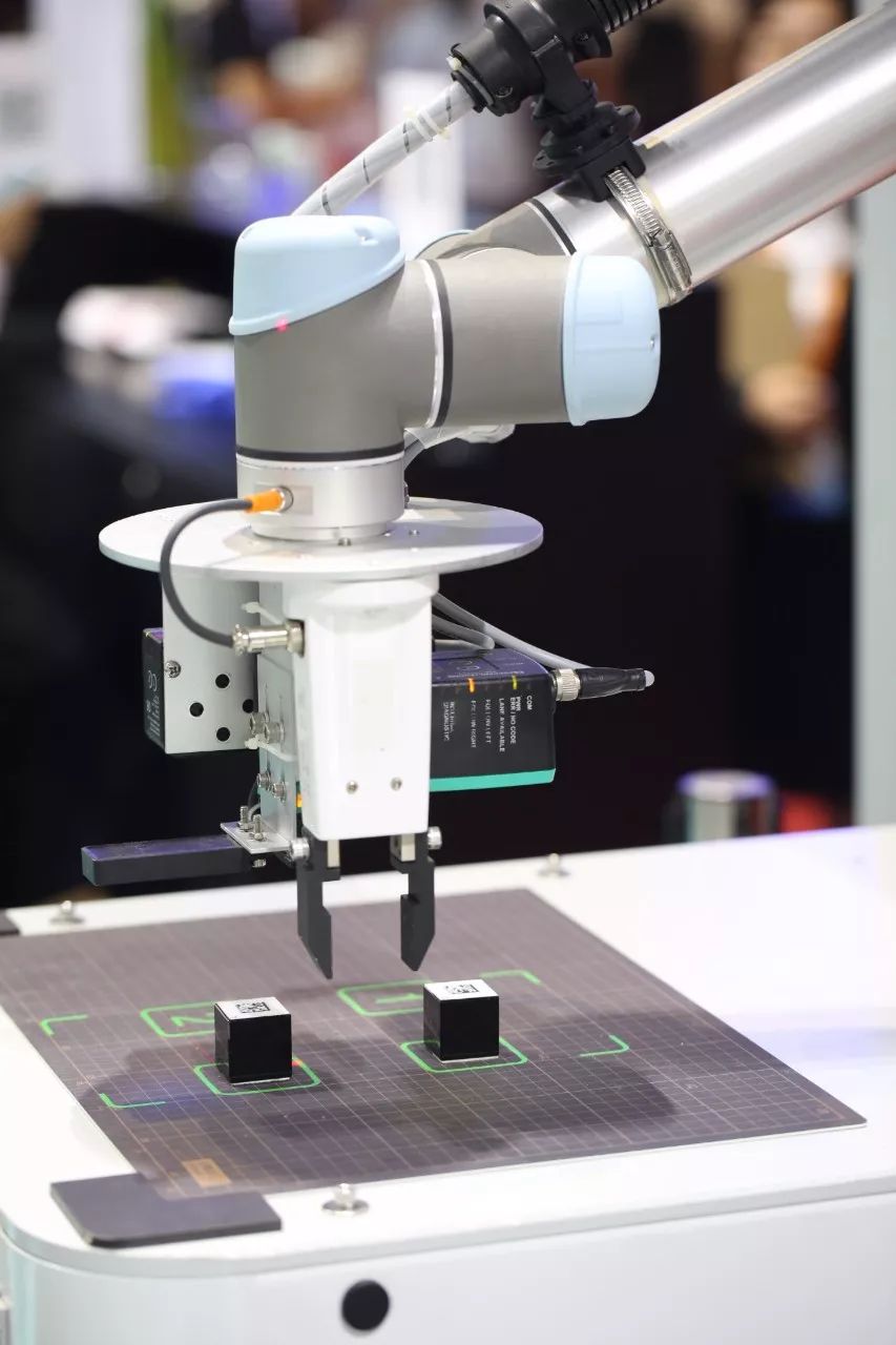 AGV上的機器人機械臂同樣引人關(guān)注,集成多款智能傳感器產(chǎn)品,現(xiàn)場模擬對運載貨物上的標(biāo)簽物體的順序識別和抓取,完成這一系列的自動化動作: