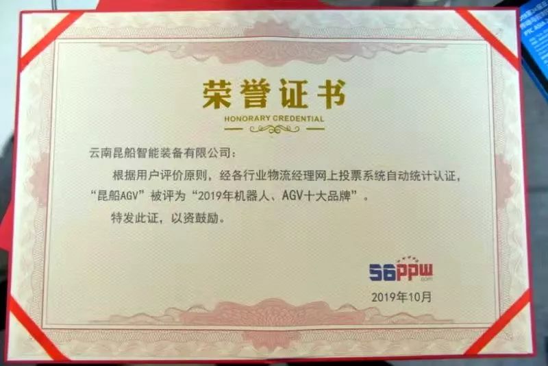 昆明昆船物流信息產業(yè)有限公司被評為“2019年物流系統(tǒng)集成十大品牌”、云南昆船智能裝備有限公司被評為“2019年機器人、AGV十大品牌”。