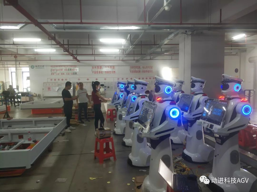 圖/動(dòng)進(jìn)AGV車間正在出廠前測(cè)試多臺(tái)警用機(jī)器人