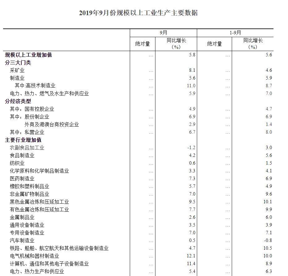 (來自于國家統(tǒng)計局10月18日數(shù)據(jù))