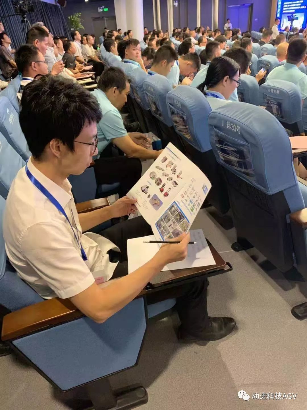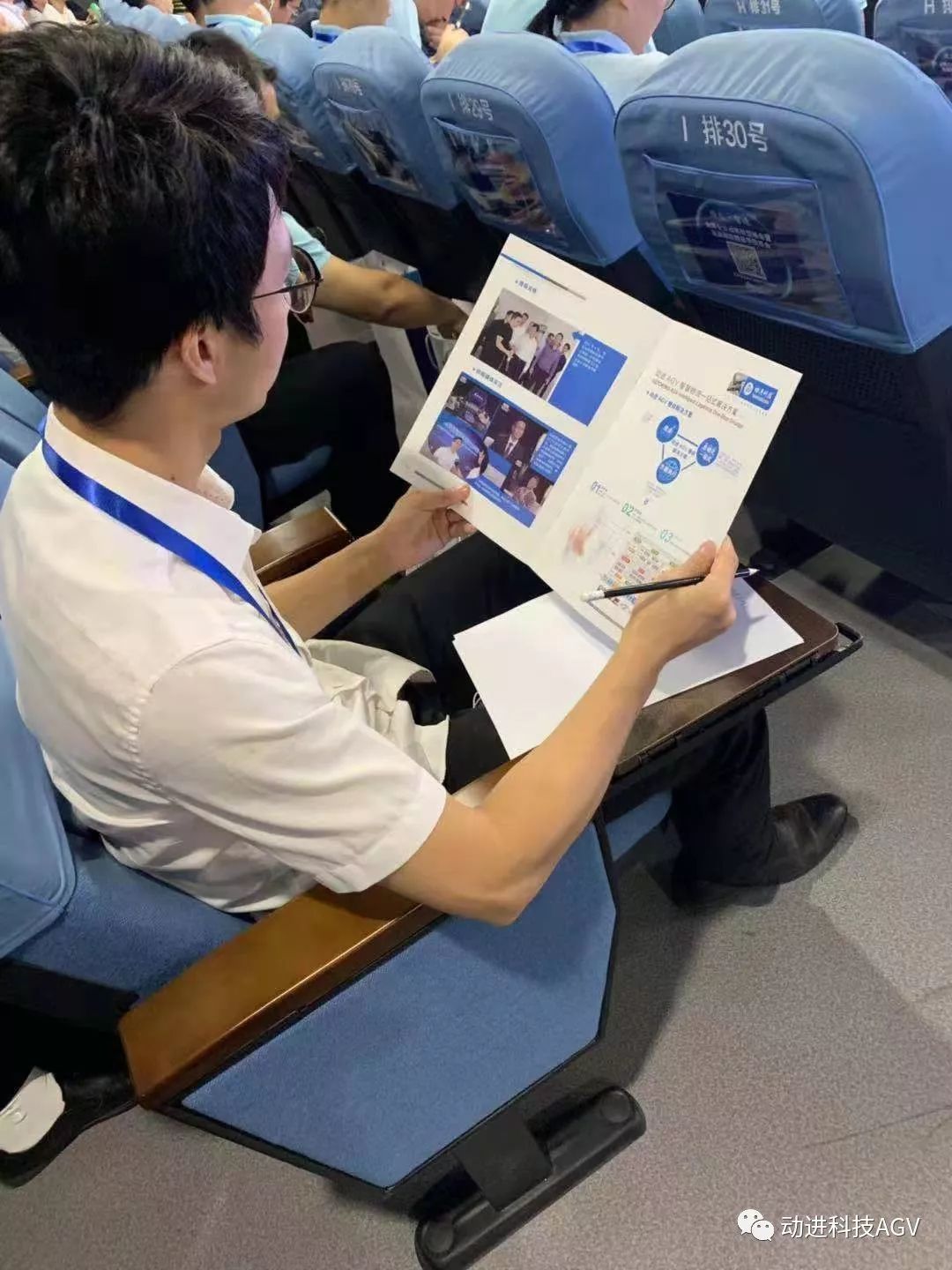 現(xiàn)場觀眾在翻閱動進智能公司畫冊,被琳瑯滿目的動進AGV小車所吸引