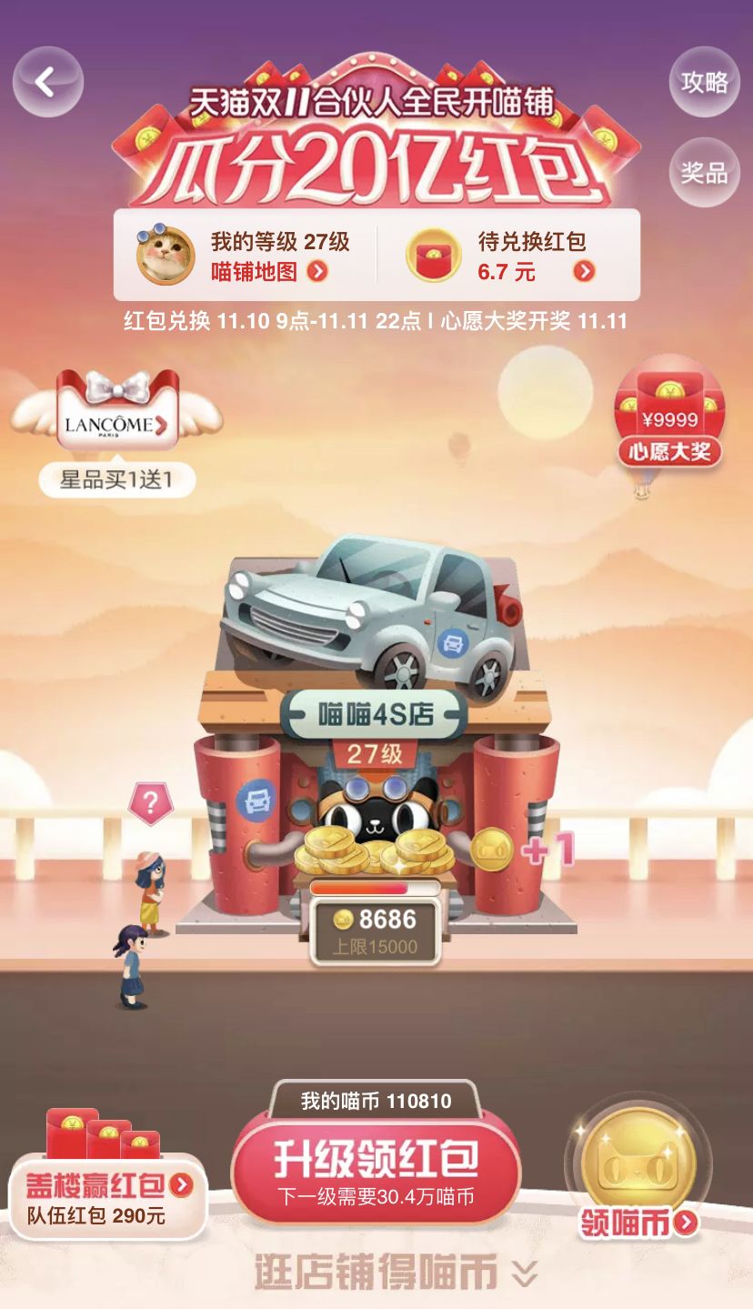 新一輪雙十一淘寶又發(fā)力了!“喵”“喵”,升級喵鋪領(lǐng)紅包~“叮咚”“叮咚”,每天早上9點的蓋樓大挑戰(zhàn)準時開戰(zhàn),隊伍榮耀至上!