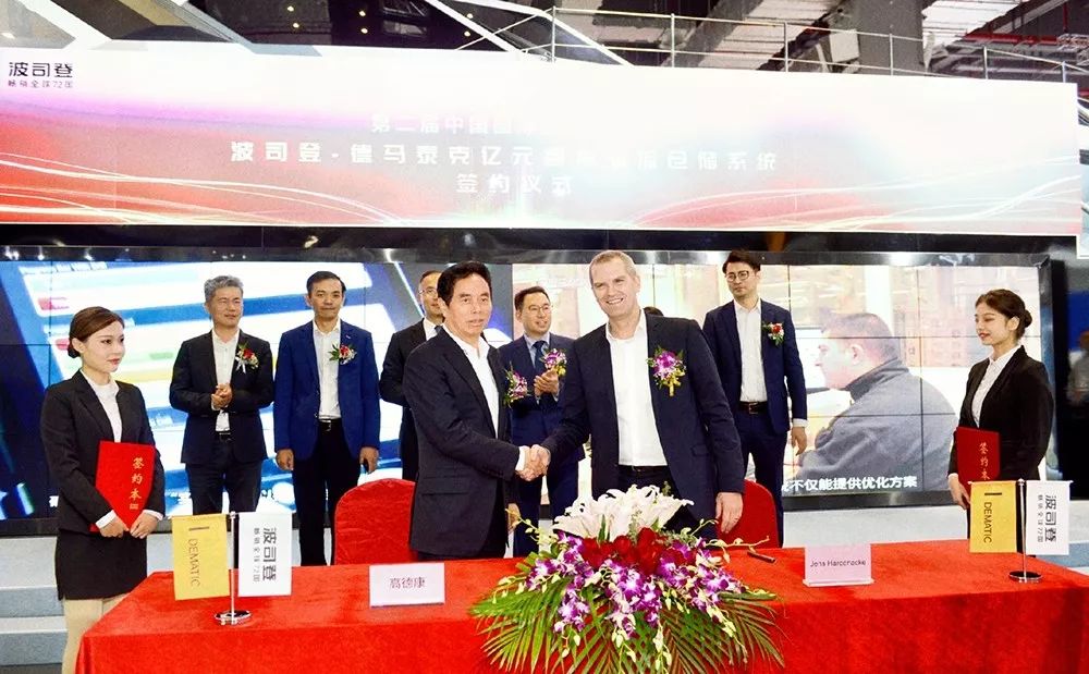 上午10點(diǎn),德馬泰克全球高級(jí)副總裁及中國(guó)區(qū)董事總經(jīng)理Jens Hardenacke與波司登國(guó)際控股有限公司董事局主席兼總裁高德康先生出席簽約儀式,現(xiàn)場(chǎng)簽訂超億元人民幣合約,正式開啟倉(cāng)儲(chǔ)系統(tǒng)合作!