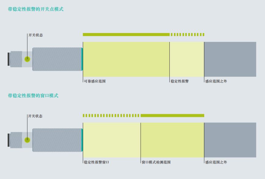 帶穩(wěn)定性報警的開關點模式—監(jiān)視可以保證穩(wěn)定的感應距離