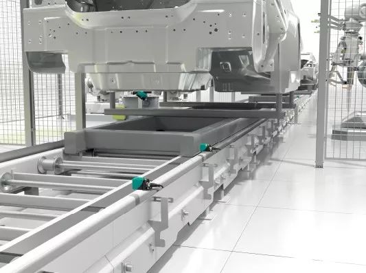 在汽車工廠中,機器人將零件焊接到底盤上,然后將底盤上的零件運送到生產單元的平臺上。衰減系數為1傳感器可以確保焊接平臺定位在限定位置上。一旦平臺到達限定的位置,生產單元中的焊接機器人被激活,開始對車輛側面和車頂部件進行焊接。衰減系數為1電感式傳感器可以在滑道上每個限位位置實現精準定位,保證整個流程的穩(wěn)定可靠。