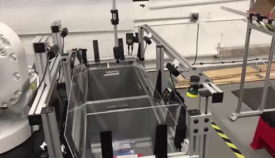 機(jī)器人的供包動作,主要是模擬人體的動作和形態(tài),通過視覺指引進(jìn)行操作。這個過程中,3D視覺相當(dāng)于眼睛,可以看到商品形狀以及位置,算法作為大腦,指導(dǎo)機(jī)器人執(zhí)行動作,最終完成商品的抓取及擺放動作。