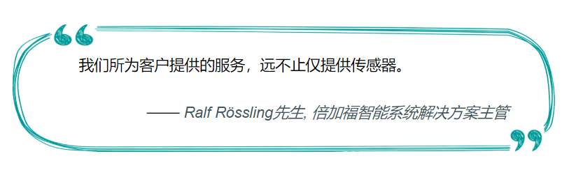 “幾年前我們的客戶需要的僅僅是單獨(dú)的傳感器,而如今他們尋求的是定制化的、全面的解決方案,” 倍加福智能系統(tǒng)解決方案主管Ralf R?ssling先生解釋道。R?ssling先生和他的團(tuán)隊規(guī)劃方案,并為工廠自動化項目準(zhǔn)備完整的、可操作的解決方案。這些解決方案可不僅僅是單個的傳感器和相應(yīng)的附件,還包括定制相應(yīng)的軟件和與客戶ERP系統(tǒng)的連接。“我們?yōu)榭蛻籼峁┑姆?wù)可遠(yuǎn)遠(yuǎn)不止是提供傳感器,” R?ssling先生說。