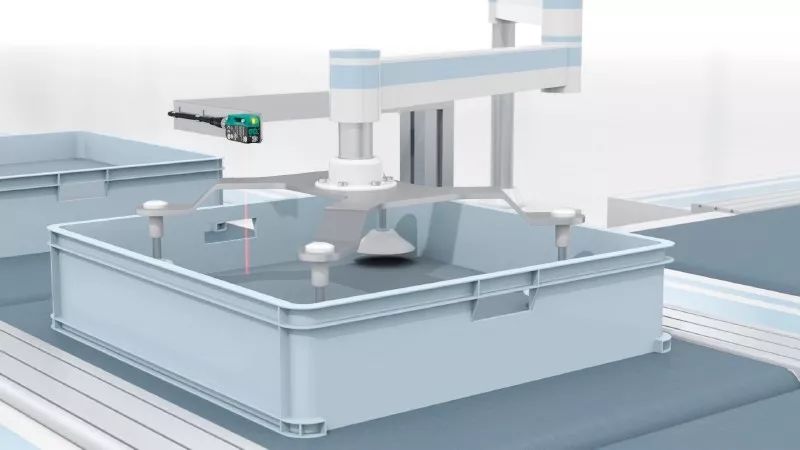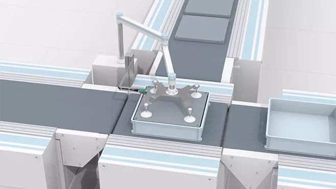 由于每個料箱內(nèi)的數(shù)量不同,卸料過程必須靈活。為了避免上游的流程發(fā)生延遲,并優(yōu)化整個生產(chǎn)流程,應(yīng)可靠地檢測中間產(chǎn)品,并在適當(dāng)?shù)臅r間將接下來的料箱成排運(yùn)送到位。因此,在抓手從正在卸裝的料箱中移除最后一塊物料前,下一個料箱就被運(yùn)送至生產(chǎn)站。在料箱離開卸裝站后,立即將下一個料箱運(yùn)送到位。