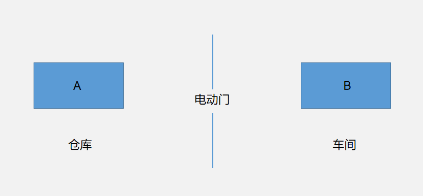 如現(xiàn)在有一任務(wù)需求為:派遣移動(dòng)機(jī)器人把料架從倉庫A點(diǎn)運(yùn)輸至車間產(chǎn)線B點(diǎn),并且車間與倉庫之間有一電動(dòng)門,當(dāng)移動(dòng)機(jī)器人將料架運(yùn)輸至產(chǎn)線B點(diǎn)時(shí)需要播放音樂提醒。