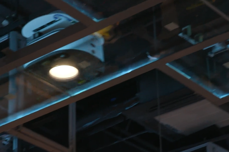 菜炒好后,傾倒裝盤,顧客無需取餐。菜盤會穩(wěn)穩(wěn)地上升傳送至“云軌”,這個在天花板上跑來跑去的小家伙負責了重要的送餐工作。肚子里裝著菜肴的小機器人按路徑到達點菜餐桌上方后,會將菜肴移至托盤。而托盤緩緩下降,把菜肴穩(wěn)穩(wěn)當當?shù)厮偷娇腿俗郎?,真可謂“天上掉餡兒餅”。