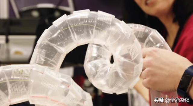 美國斯坦福大學(xué)利用非常巧妙的裝置與材料,設(shè)計(jì)了一款可以自己生長的軟體機(jī)器人,它可以長到比自己大1000倍的大小,能夠快速移動、膨脹或收縮,最前方裝有攝像頭。