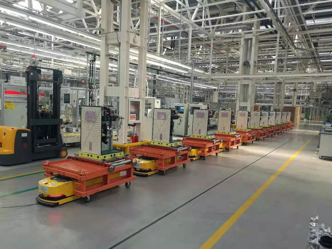 嘉騰在電子行業(yè)也是早有經(jīng)典案例,下面案例采用的是磁導(dǎo)航的潛伏式牽引AGV“小白豚”,是嘉騰獲得紅點獎的明星產(chǎn)品?!靶“纂唷钡淖畲鬆恳亓繛?000KG,足以滿足各種場景的需求。