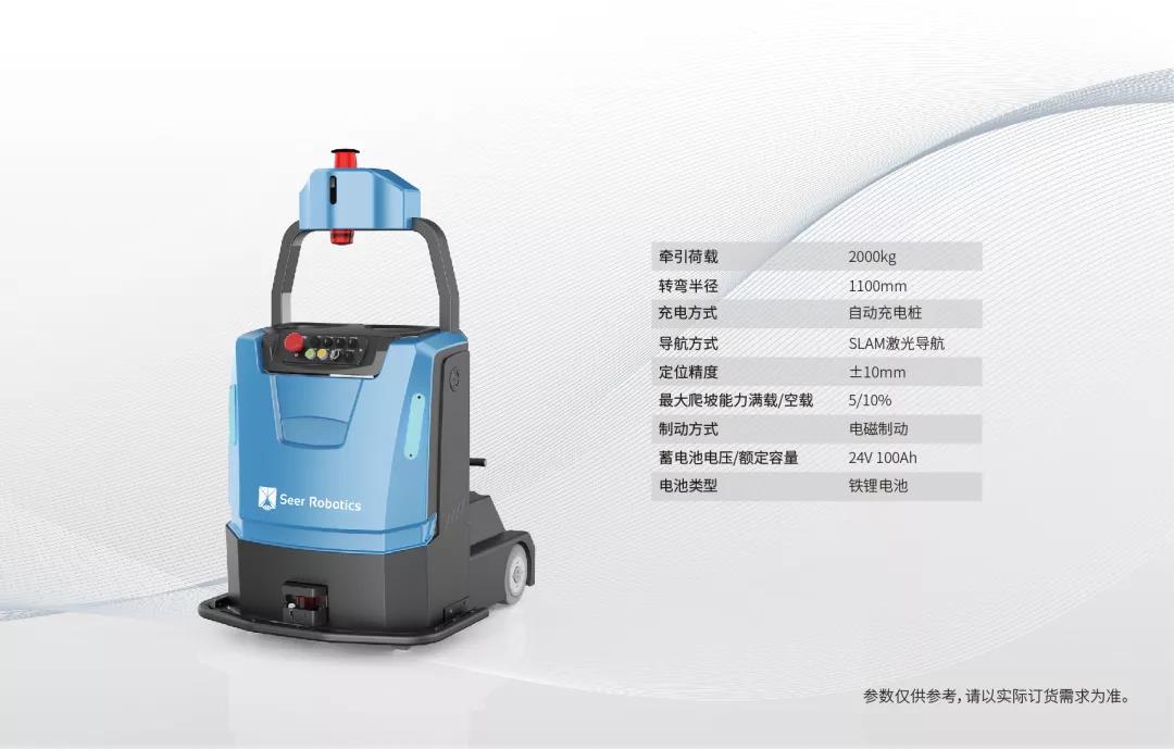 運(yùn)載能力超強(qiáng),可一次牽引多個(gè)料架、料籠,帶載大量的物料一次性完成搬運(yùn)
