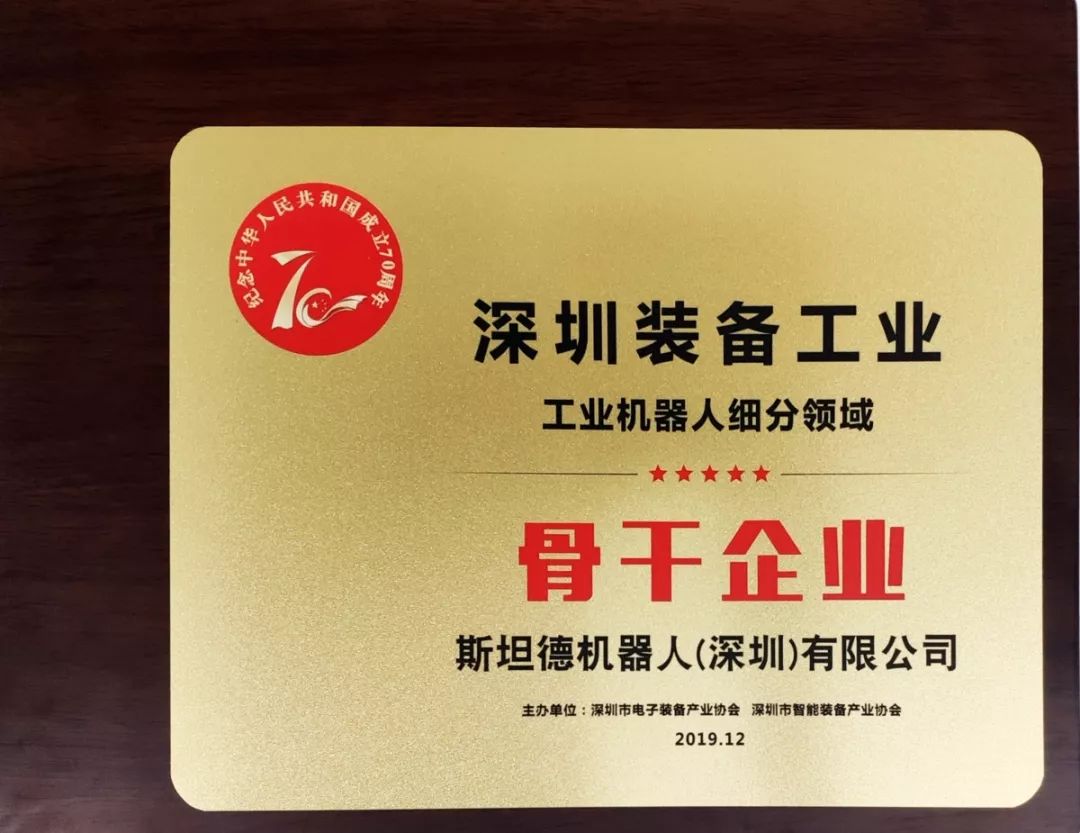 12月18日,2019深圳裝備工業(yè)細分領域龍頭骨干新銳企業(yè)頒獎典禮圓滿落下帷幕,斯坦德機器人作為工業(yè)機器人領域的領航企業(yè)代表,榮獲“工業(yè)機器人細分領域骨干企業(yè)”獎項。