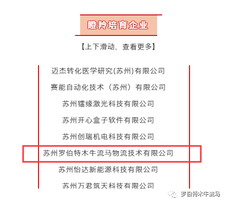 近日,蘇州工業(yè)園區(qū)對(duì)2019年度獨(dú)角獸、瞪羚企業(yè)培育工程入庫企業(yè)名單給予公示,蘇州羅伯特木牛流馬物流技術(shù)有限公司入選瞪羚培育企業(yè)并順利通過公示。