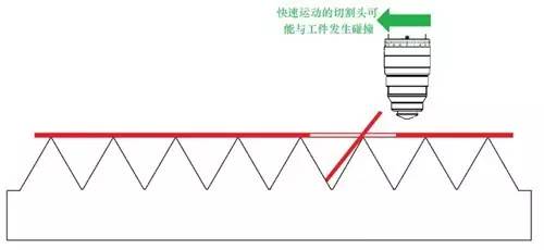 進(jìn)行激光切割加工時(shí),板料被鋸齒狀的支撐條托住。被切割下來的零件,如果不夠小,不能從支撐條的縫隙中落下;如果又不夠大,不能被支撐條托住;則可能失去平衡,翹起。高速運(yùn)動(dòng)的切割頭可能與之發(fā)生碰撞,輕則停機(jī),重則損壞切割頭。