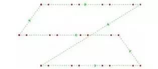 早期的激光切割機(jī)的空程如下圖所示,切割頭要次第完成三個(gè)動(dòng)作:上升(到足夠安全的高度)、平動(dòng)(到達(dá)點(diǎn)B的上方)、下降。