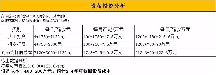 風(fēng)能葉片自動打磨解決方案:自動打磨系統(tǒng)擁有很高的打磨效率,打磨一個葉片的時間僅需3-4小時,其打磨效率是人工打磨的10倍以上,可24小時作業(yè),無職業(yè)健康風(fēng)險,預(yù)計2-4年可以收回設(shè)備成本。