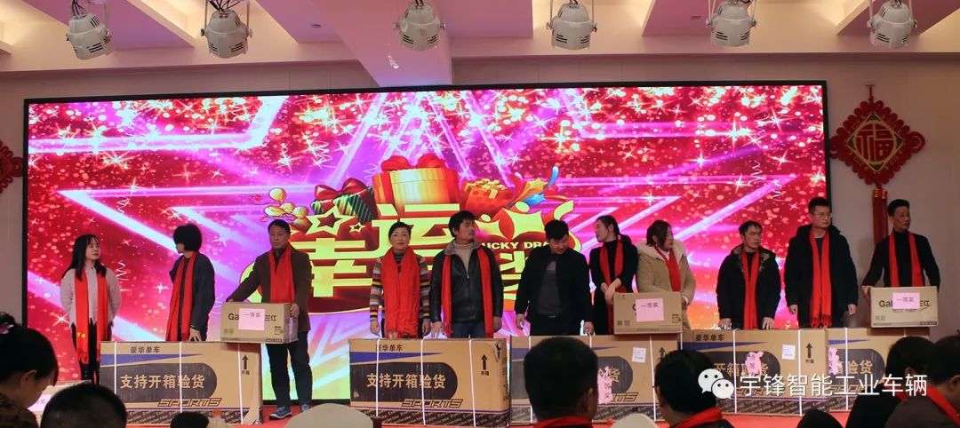 抽獎(jiǎng)環(huán)節(jié),毫無(wú)疑問(wèn)是大家每年最期待的環(huán)節(jié),無(wú)論是新加入的員工還是和公司一起櫛風(fēng)沐雨的老員工臉上都洋溢著充滿自豪的笑容,本次晚會(huì)獎(jiǎng)品可謂是豐盛多彩,品類(lèi)繁多,高達(dá)85%中獎(jiǎng)率,讓臺(tái)下嗨翻了天,抽獎(jiǎng)現(xiàn)場(chǎng)在大屏幕紅光的映襯下,場(chǎng)面顯得十分熱烈,獲獎(jiǎng)?wù)叩南矏傄缬谘员砼c背景紅色融為一體。最后由安徽宇鋒董事長(zhǎng)項(xiàng)衛(wèi)鋒上臺(tái)抽取特等獎(jiǎng),將晚會(huì)的氣氛推向最高潮。