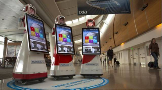 在位于硅谷的Mineta San Jose國際機場有三位機器人工作人員:Piper,Amelia和Norma,這些機器人外形上酷似穿著紅裙的少女,擁有32英寸的大型觸控顯示屏,使用Windows軟件,并可以用英、法、德、日、西班牙5種語言提供信息。除了提供餐飲、購物信息外,這三個機器人還可以跳舞、播放音樂、為游客拍照,并且可以通過電子郵件給游客,或者直接顯示在屏幕上成為機器人的“臉”。機場管理人員一方面希望通過使用機器人為旅客提供更好的服務,另外一方面也希望通過機器人反應硅谷地區(qū)獨特的創(chuàng)新文化。