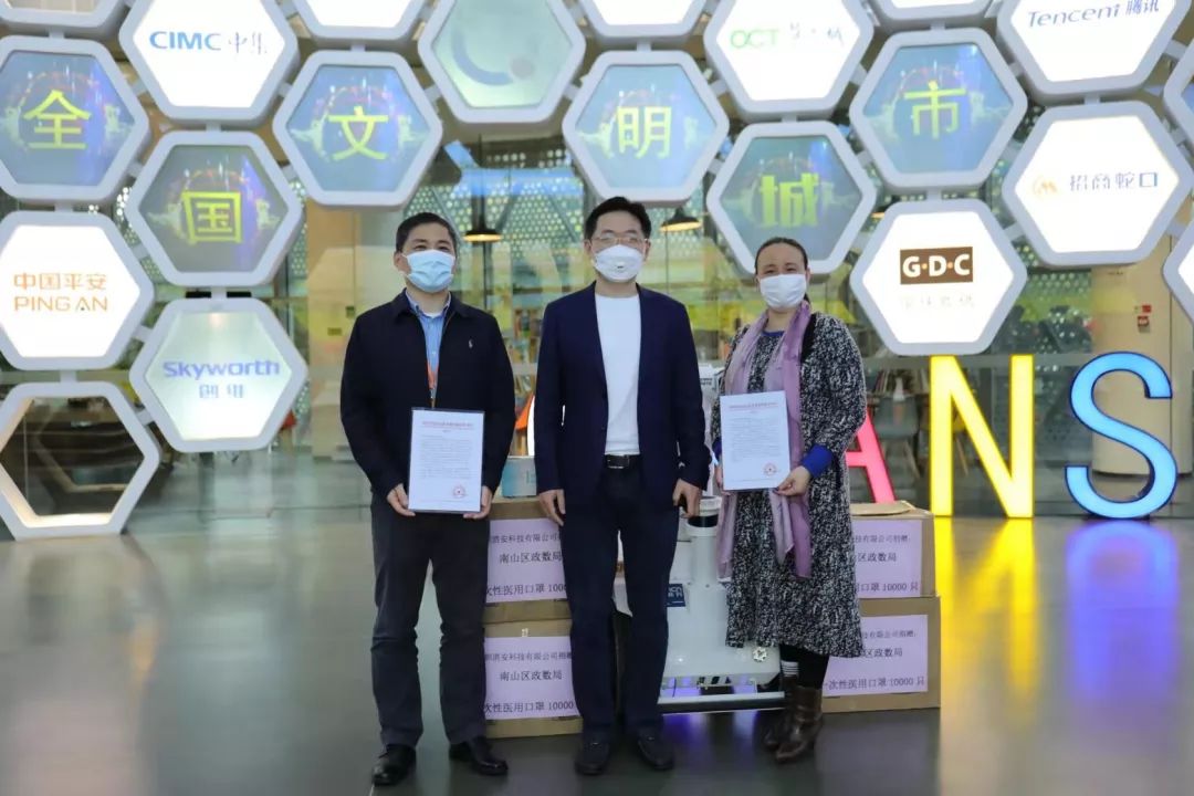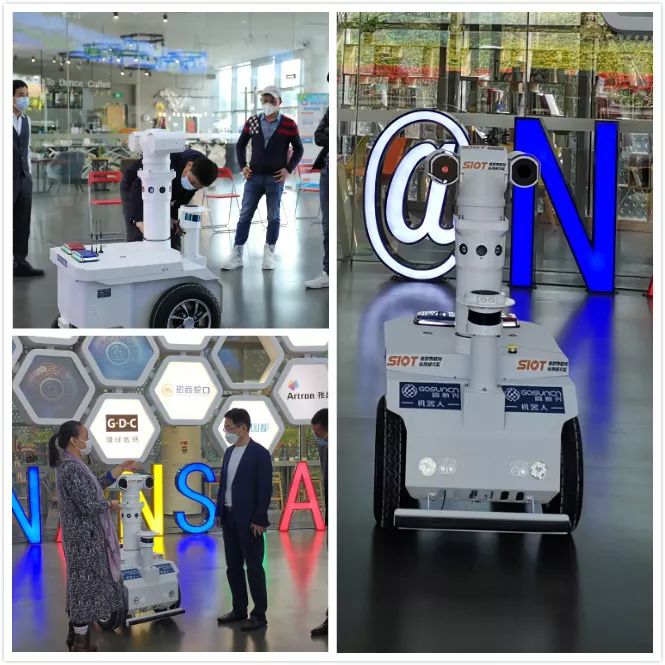 2020年2月13日,高新興科技集團(tuán)攜深圳市蜂群物聯(lián)網(wǎng)應(yīng)用研究院為南山區(qū)行政服務(wù)大廳捐贈5G測溫巡邏機(jī)器人,并于深圳南山區(qū)行政服務(wù)大廳舉行了捐贈儀式。