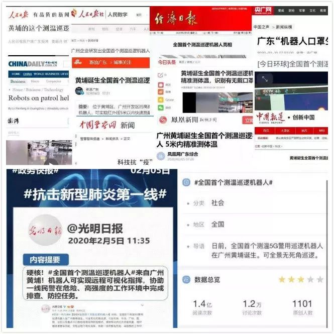 高新興研發(fā)了國內(nèi)首個(gè)測溫巡邏機(jī)器人,此前就被包含人民日報(bào)、新華社等在內(nèi)的諸多主流媒體采訪報(bào)道,僅光明日報(bào)主持的“全國首個(gè)測溫巡邏機(jī)器人”微博話題,就有超一億的點(diǎn)擊。