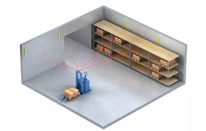 激光反光板導(dǎo)航,它的工作原理是在移動(dòng)機(jī)器人行駛路徑的周?chē)惭b位置精確的激光反射板,通過(guò)激光雷達(dá)發(fā)射激光束,同時(shí)采集由反射板反射的激光束來(lái)確定其當(dāng)前的位置和方向,并通過(guò)連續(xù)的三角幾何運(yùn)算來(lái)實(shí)現(xiàn)機(jī)器人的導(dǎo)航。它的優(yōu)勢(shì)在于定位精確,安裝反光板相對(duì)靈活;它的劣勢(shì)在于依舊沒(méi)有擺脫反光柱輔助定位設(shè)施的依賴,對(duì)反光板安裝精度要求高,對(duì)地面環(huán)境、光線環(huán)境有一定要求。