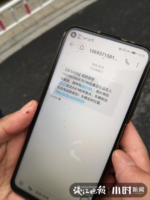 “您的包裹正在由無人車配送,預(yù)計(jì)將在15:27到達(dá)xxx棟停靠點(diǎn),車輛到達(dá)后會聯(lián)系您!”這兩天,杭州城西西溪華府的不少業(yè)主收到這樣的取快遞短信。