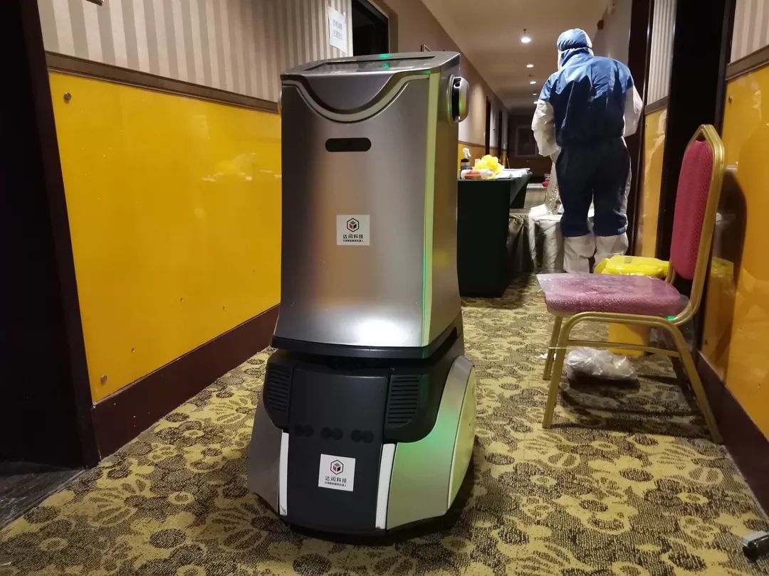 新冠肺炎隔離點(diǎn)也對清潔提出了更高要求,目前,達(dá)闥5G云端清潔消毒機(jī)器人已經(jīng)部署于隔離點(diǎn)一層的大廳,實(shí)現(xiàn)了24小時(shí)不間斷清潔服務(wù)。機(jī)器人專門搭載消毒水箱,能夠獨(dú)立完成高效消毒、清掃、除菌等工作。