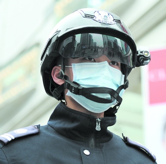 “最高體溫36.4℃,請通過;最高體溫36.2℃,請通過;最高體溫37.4℃,那位帥哥請留步,請到我們的執(zhí)勤點位復測一次?!痹诩t星路步行街上,一位頭戴酷似科幻電影頭盔的網(wǎng)格員攔下了一位準備進入商場的市民。此時,他正“掃描”著來往人群,進行體溫篩查和記錄,科技感十足的頭盔酷似經(jīng)典科幻電影《機械戰(zhàn)警》里的裝備。“只要戴上頭盔走在人群中,一眼掃過,即可完成對前方3到5米范圍內(nèi)所有目標人員的掃描,若發(fā)現(xiàn)發(fā)熱人員,頭盔立刻聲光報警?!闭诩t星路步行街上執(zhí)勤的網(wǎng)格員告訴記者。