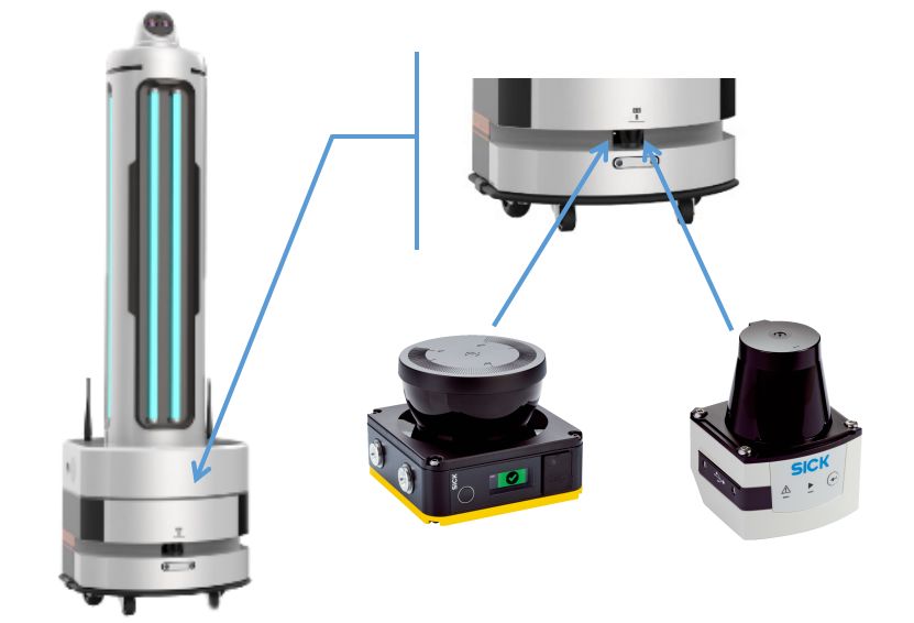功能如此強(qiáng)大的消殺毒機(jī)器人當(dāng)然離不開SICK強(qiáng)大的傳感器融合基因,SICK所擁有移動(dòng)機(jī)器人平臺(tái)的各類安全及導(dǎo)航產(chǎn)品,為優(yōu)艾智合的移動(dòng)機(jī)器人添加了一雙明亮的雙眼。