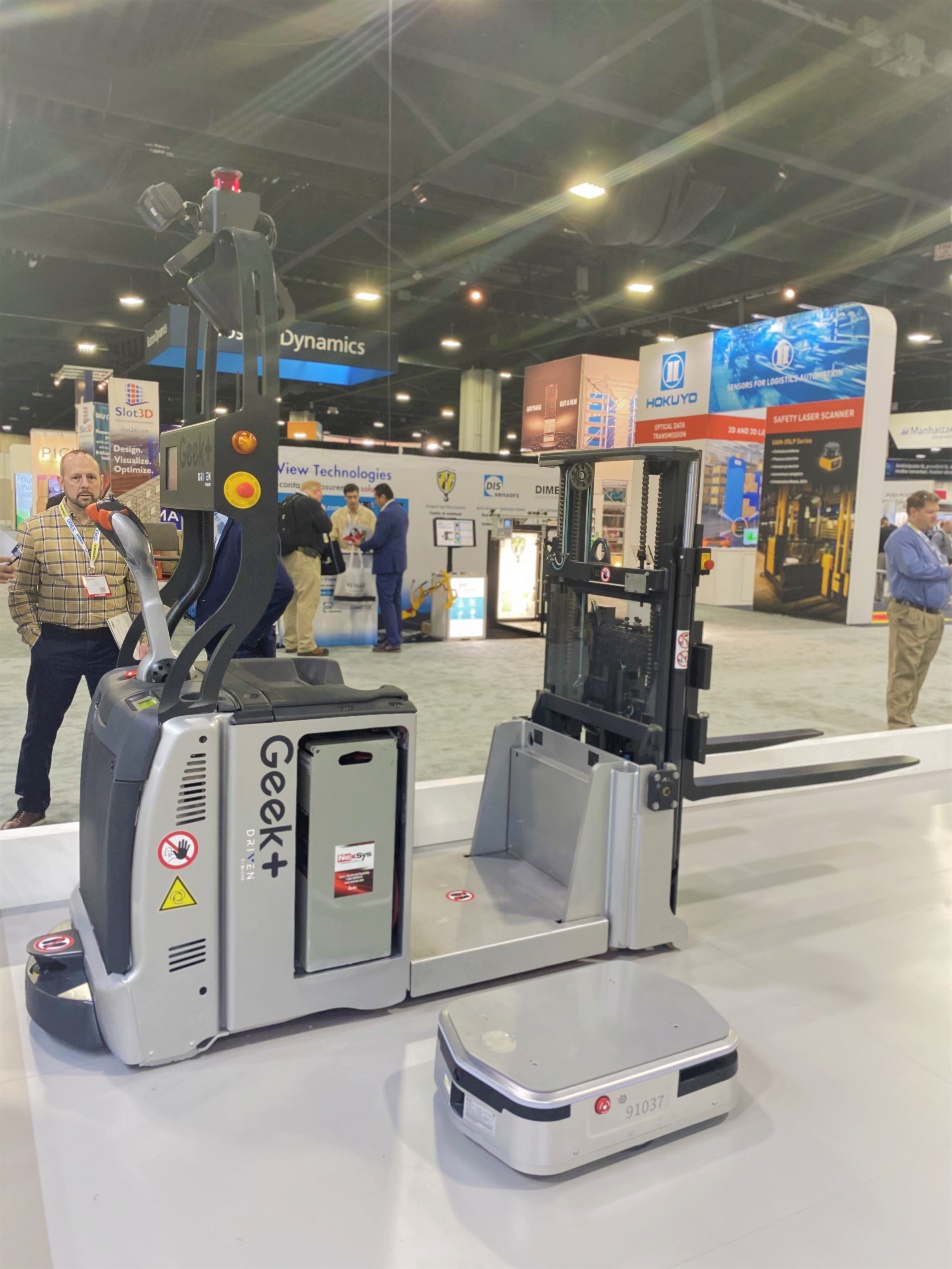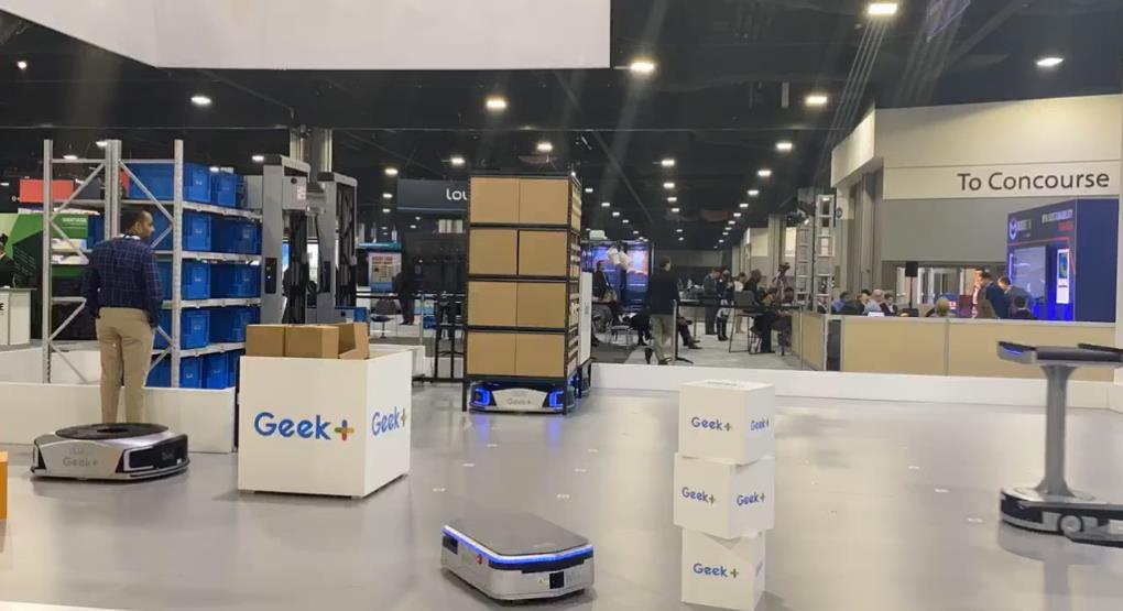 中國(guó)AGV網(wǎng)(m.wnmc.org.cn)3月10日來(lái)自美國(guó)亞特蘭大Modex 2020展消息。來(lái)自中國(guó)的極智嘉公司Geek+ +在6696號(hào)展臺(tái)上展示其多系列主打產(chǎn)品。極智嘉去年在加利福尼亞州圣地亞哥設(shè)立北美辦公室,此次展會(huì)中,創(chuàng)新的RoboShuttle貨箱到人揀選及S20分揀機(jī)器人也是首次亮相北美市場(chǎng)!