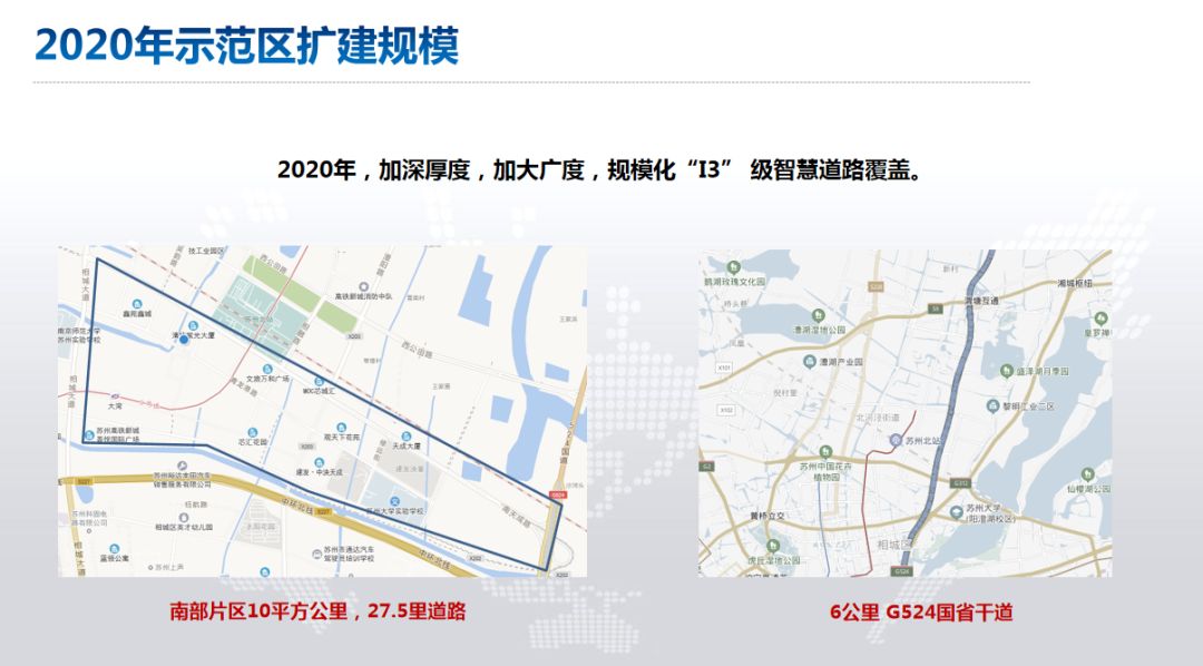 在測試道路方面,今年相城將規(guī)?;癐3”級智慧道路覆蓋,除去年在高鐵新城中部片區(qū)已完成建設(shè)的總長8.4公里高鐵新城智能網(wǎng)聯(lián)汽車公共測試一期道路,今年6月底前還將在高鐵新城南部片區(qū)10平方公里,建設(shè)總長27.5公里的二期示范測試道路,涵蓋住宅樓、辦公樓、政府、賓館、會展中心等一系列的商業(yè)化場景。