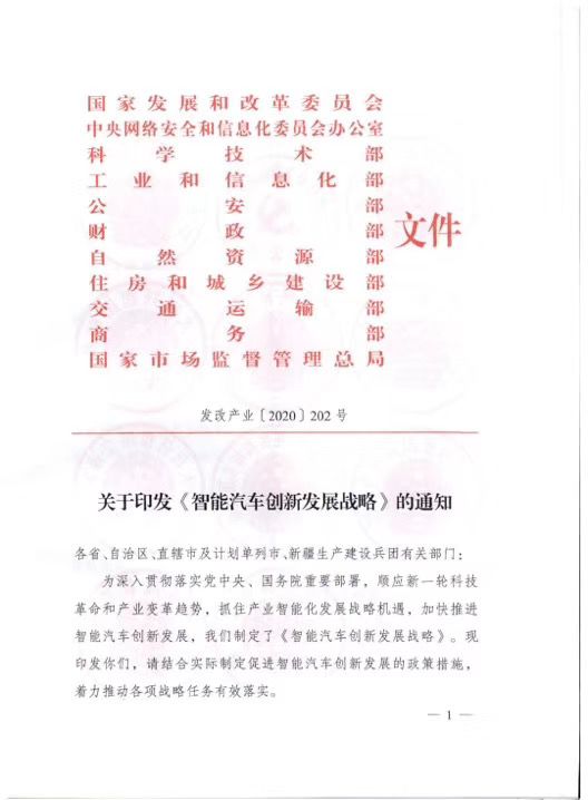 2020年2月,發(fā)改委、工信部、交通運輸部等11個國家部委聯(lián)合印發(fā)了《智能汽車創(chuàng)新發(fā)展戰(zhàn)略》,代表我國智能汽車頂層設(shè)計出爐,戰(zhàn)略提出要實現(xiàn)有條件自動駕駛的智能汽車達(dá)到規(guī)?;a(chǎn),實現(xiàn)高度自動駕駛的智能汽車在特定環(huán)境下市場化應(yīng)用。