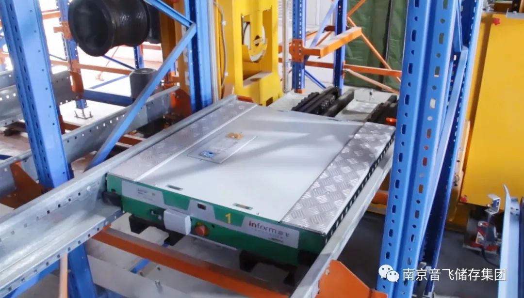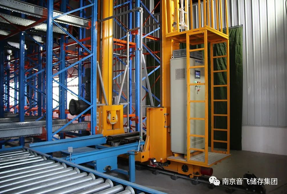 自動碼垛后的產(chǎn)品通過輸送線,送至立體庫入庫處,堆垛機取走托盤,放置到南京音飛集團WMS軟件分配的巷道端頭,由穿梭車將該貨物輸送至巷道另一端,相同批次產(chǎn)品存放在相同巷道。出庫時穿梭車將指定貨物移至子巷道端口,堆垛機通過貨叉取走貨物,放置到出庫輸送線,由叉車取走發(fā)貨。