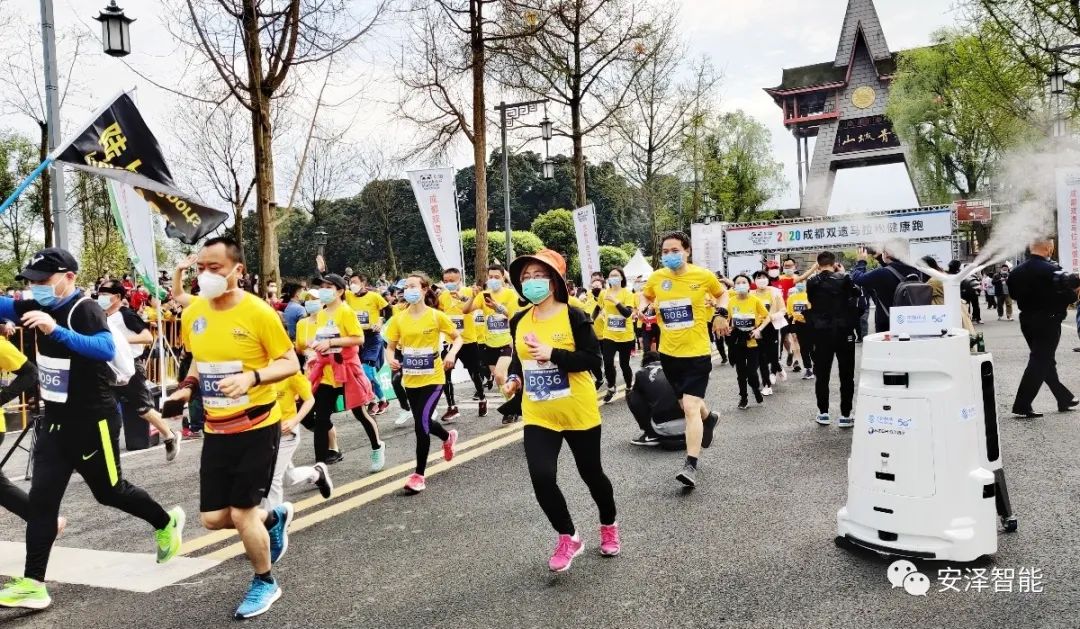 在賽事準(zhǔn)備及進(jìn)行過程中,它對起跑區(qū)的各個角落及每位參跑選手進(jìn)行360°無死角消毒,保障參賽的跑者及工作人員的安全。