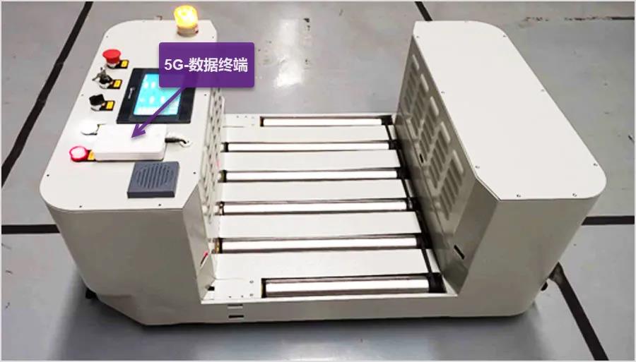 圖2同日5G背負(fù)式輥筒AGV的實(shí)物圖,同日5G背負(fù)式輥筒AGV經(jīng)過(guò)測(cè)試后網(wǎng)絡(luò)時(shí)延大大降低,穩(wěn)定在50ms以內(nèi),網(wǎng)絡(luò)穩(wěn)定性也大幅度提升。本次5G技術(shù)在AGV上的應(yīng)用測(cè)試取得圓滿成功。