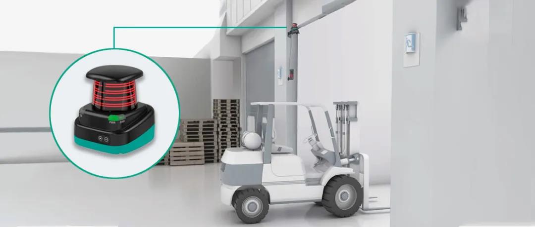 R2000檢測型二維激光雷達自帶穩(wěn)定無擺動的掃描軸,檢測范圍360度,它能夠探測到進探測范圍內(nèi)小到1mm的物體。當叉車最高點取決于所負載的貨物時,R2000被安裝在門的一側(cè),將掃描軸放置在剛好低于最高凈空高度的位置。