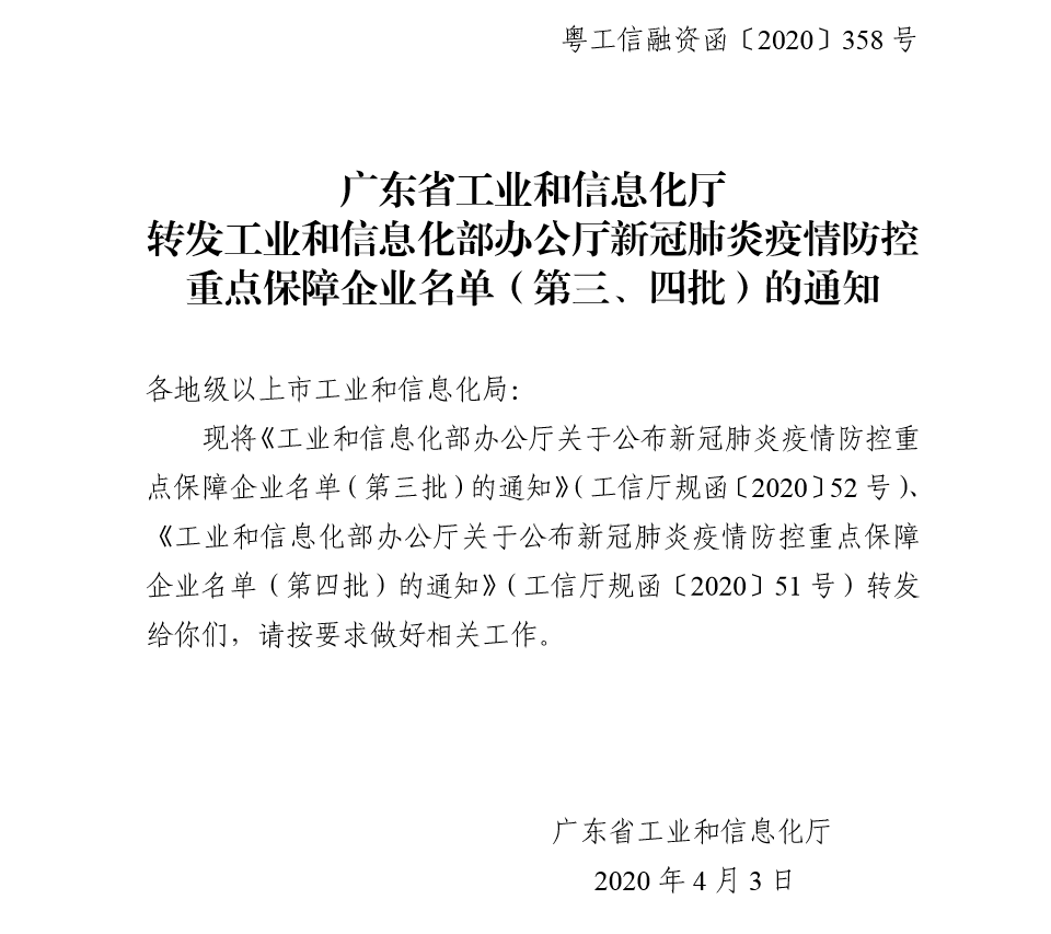 4月3日,廣東省工業(yè)和信息化廳發(fā)布《工業(yè)和信息化部辦公廳關(guān)于公布新冠肺炎疫情防控重點(diǎn)保障企業(yè)名單(第四批)的通知》,珠海一維弦機(jī)器人有限公司名列其中。