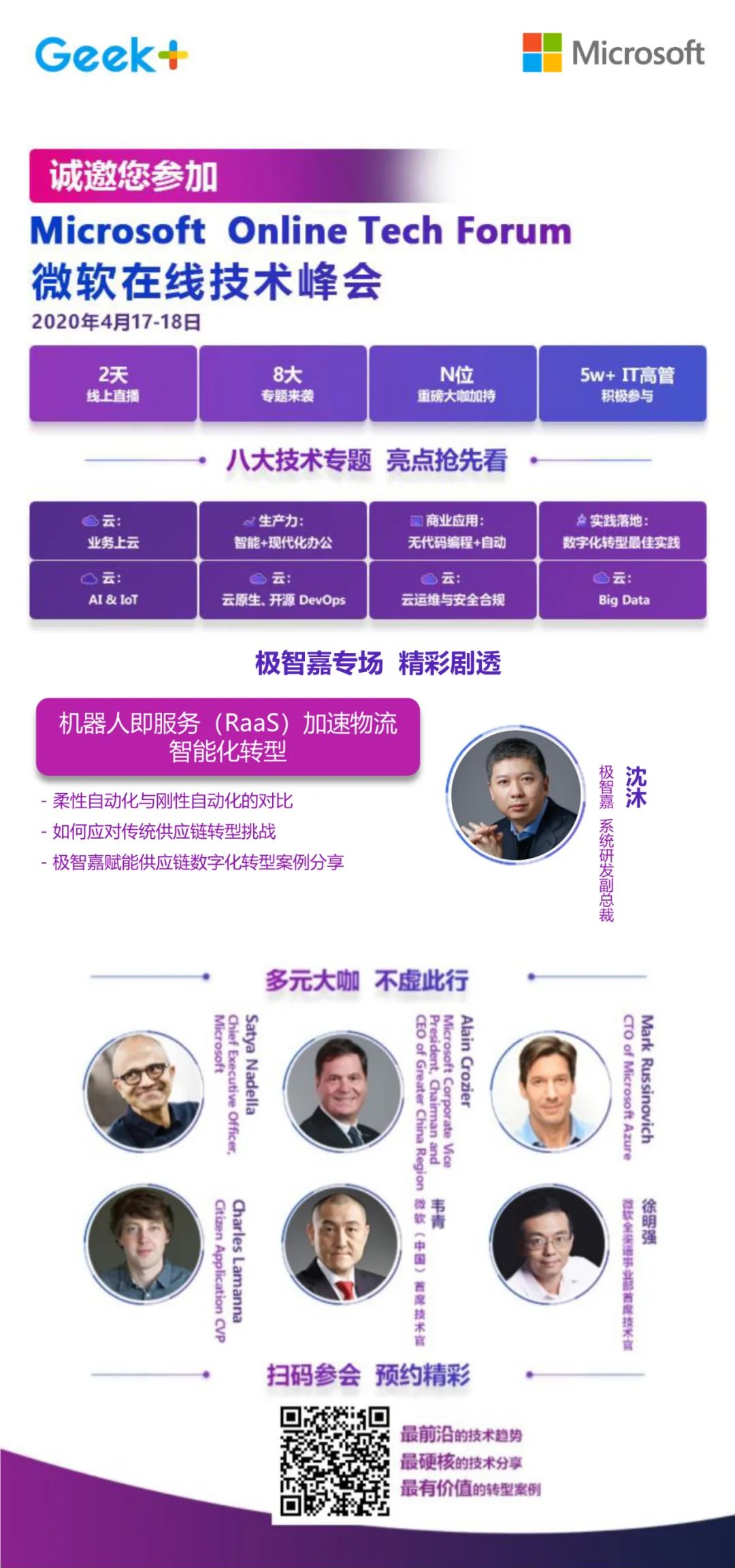 極智嘉作為全球部署超10000臺(tái)的AMR引領(lǐng)者,提供全面的物流機(jī)器人產(chǎn)品線和解決方案,憑借遍及20國(guó)的銷售、運(yùn)營(yíng)和服務(wù)能力,賦能全球近300家客戶,擁有大規(guī)模成功商用落地經(jīng)驗(yàn)。極智嘉系統(tǒng)研發(fā)部副總裁沈沐即將亮相首屆微軟在線技術(shù)峰會(huì),帶來《機(jī)器人即服務(wù)(RaaS)加速物流智能化轉(zhuǎn)型》的主題分享,從三個(gè)維度出發(fā),深度剖析柔性自動(dòng)化的價(jià)值并分享成功落地的方法和經(jīng)驗(yàn)。