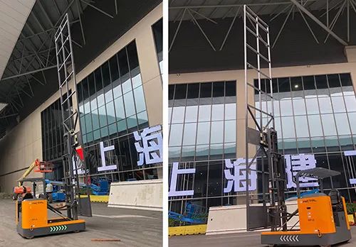 三、上海某客戶墻板安裝專機(jī)前移式叉車項(xiàng)目:在前移叉車上安裝旋轉(zhuǎn)器與工裝架對(duì)接安裝,采用麥克納姆輪技術(shù),使車輛可以任意方向移動(dòng),包括直行,橫向移動(dòng)。特別對(duì)于裝配可以進(jìn)行距離微調(diào),微調(diào)精度達(dá)到±0.5mm。