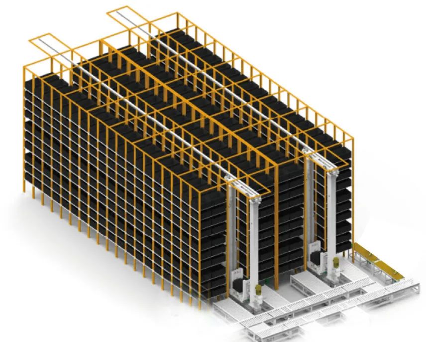 由立體貨架、有軌巷道堆垛機(jī)、出入庫輸送機(jī)系統(tǒng)、輔助設(shè)備、載具、作業(yè)控制軟件系統(tǒng)(WCS)等組成。