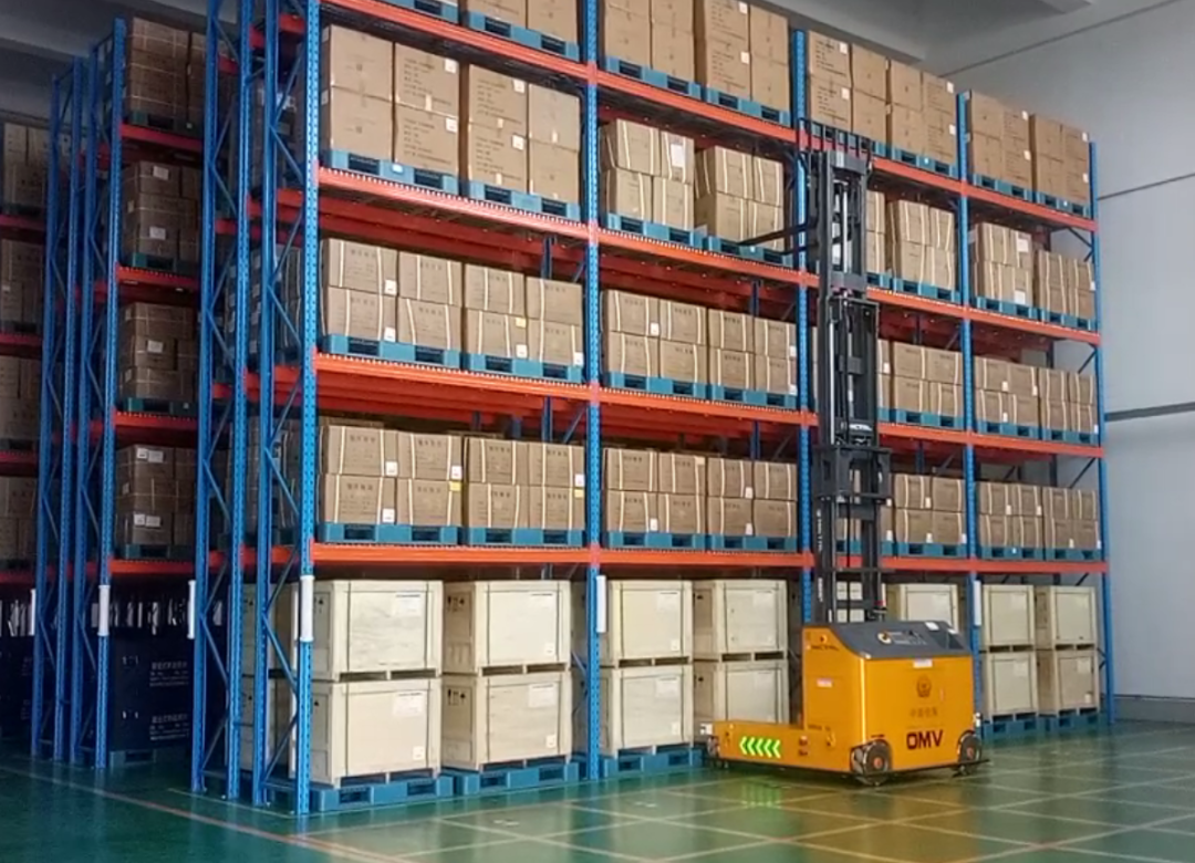 ①貨架通道寬度2.3米,根據(jù)托盤尺寸及貨架間隙定制OMV智能叉車車體的外形尺寸,充分利用貨架與貨架之間的倉儲(chǔ)面積,提升儲(chǔ)存貨量;