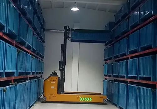 二、成都某客戶智能前移叉車物料搬運(yùn)自動(dòng)出入庫項(xiàng)目:其設(shè)備用于倉庫箱裝物料的進(jìn)出貨搬運(yùn),可實(shí)現(xiàn)在自動(dòng)模式下控制全向自動(dòng)運(yùn)行托盤,滿足將托盤自動(dòng)化運(yùn)輸?shù)蕉鄬迂浖軒煳簧希?strong>實(shí)現(xiàn)自動(dòng)入庫、出庫的工作流程,避免人員反復(fù)進(jìn)入倉庫,節(jié)省時(shí)間,提高效率。