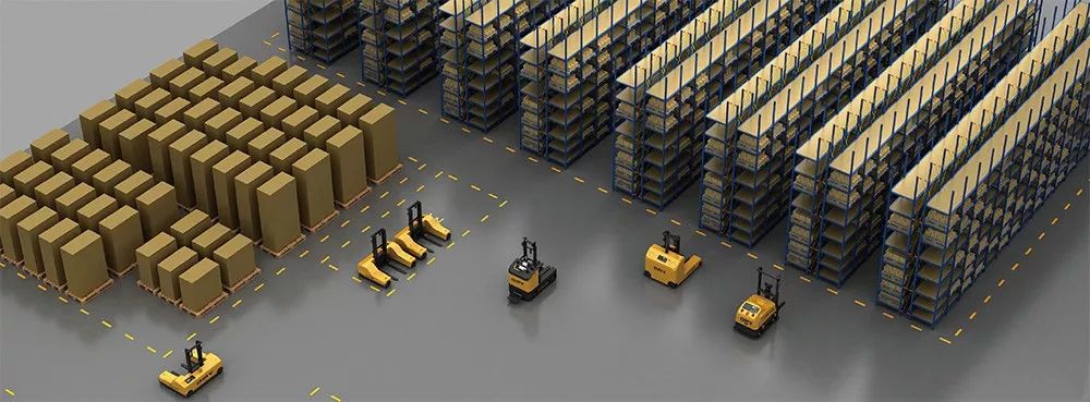 貨物托盤轉(zhuǎn)運(yùn)上貨架,使用WMS調(diào)度系統(tǒng),前移叉車根據(jù)指令通過規(guī)劃好的路徑運(yùn)送托盤放入指定貨架,由智能叉車系統(tǒng)控制實(shí)現(xiàn)叉車的雙車調(diào)度,實(shí)現(xiàn)自行進(jìn)入指定位置,并能夠自動(dòng)歸位,回到停放區(qū)。