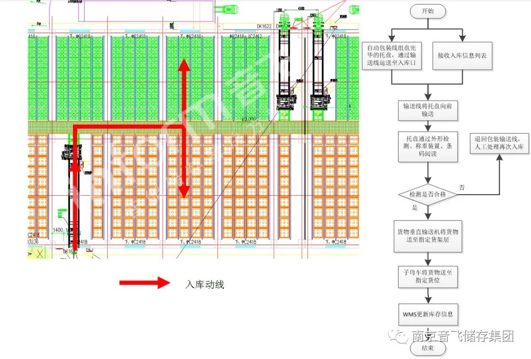 1、入庫(kù):WMS倉(cāng)庫(kù)管理系統(tǒng)接收到入庫(kù)貨物信息后,結(jié)合貨物的特性分配貨位并生成入庫(kù)指令,WCS控制系統(tǒng)調(diào)度相關(guān)設(shè)備將貨物自動(dòng)送到指定位置;