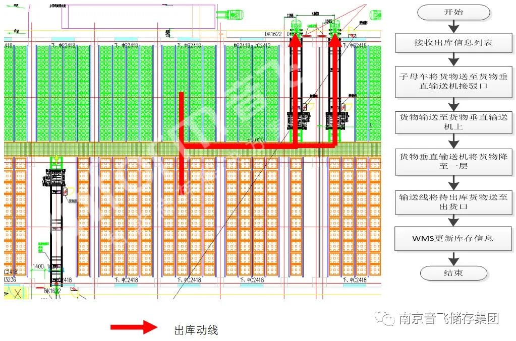 2、出庫(kù):WMS倉(cāng)庫(kù)管理系統(tǒng)接收到出庫(kù)貨物信息后;根據(jù)儲(chǔ)存貨物的位置并生成出庫(kù)指令,通過(guò)WCS控制系統(tǒng)調(diào)度相關(guān)設(shè)備將貨物自動(dòng)送到出庫(kù)端;