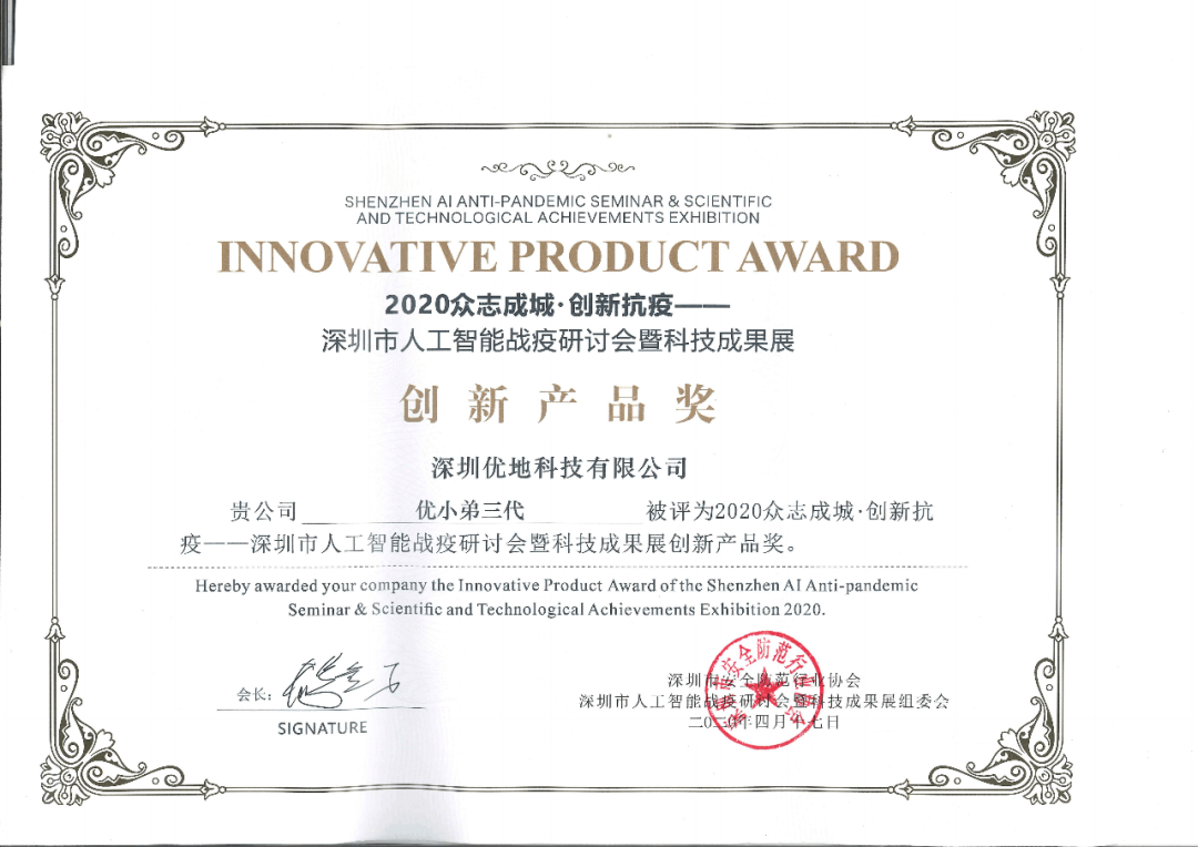 優(yōu)地科技的另一款配送機器人——優(yōu)小弟三代也憑借在抗疫中的優(yōu)秀表現(xiàn)獲得深圳市安全防范行業(yè)協(xié)會和深圳市人工智能戰(zhàn)役研討會暨科技成果展組委會頒發(fā)的“2020眾志成城·創(chuàng)新抗疫”優(yōu)秀產(chǎn)品獎!深圳市人工智能戰(zhàn)疫研討會暨科技成果展于4月18日開幕,此次線上成果展將于4月30日結(jié)束,可識別下圖二維碼線上觀展!