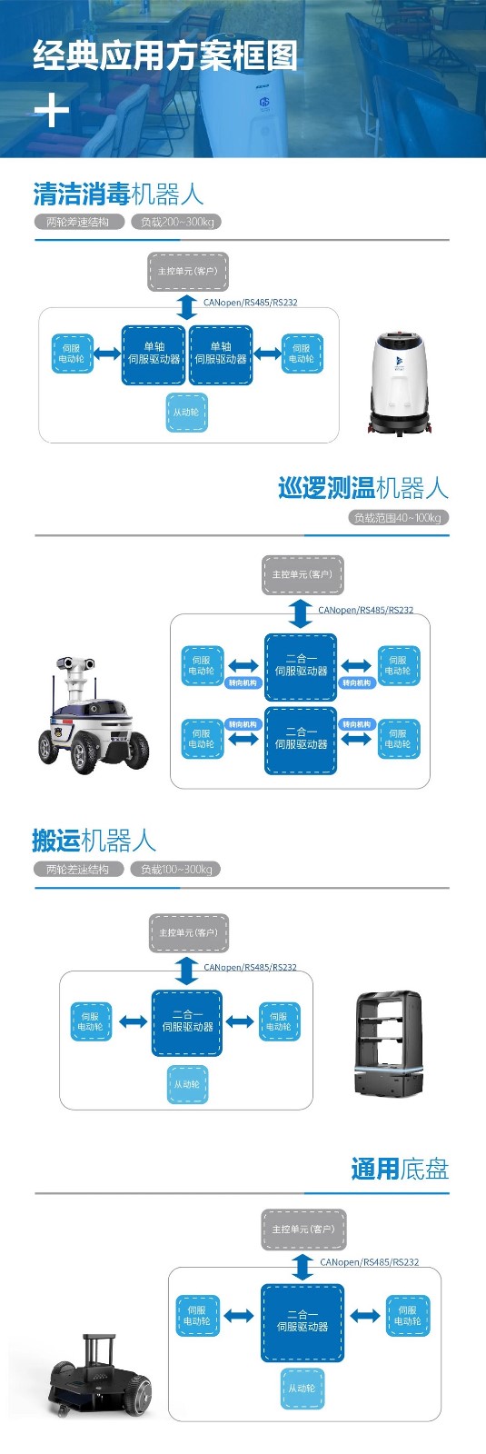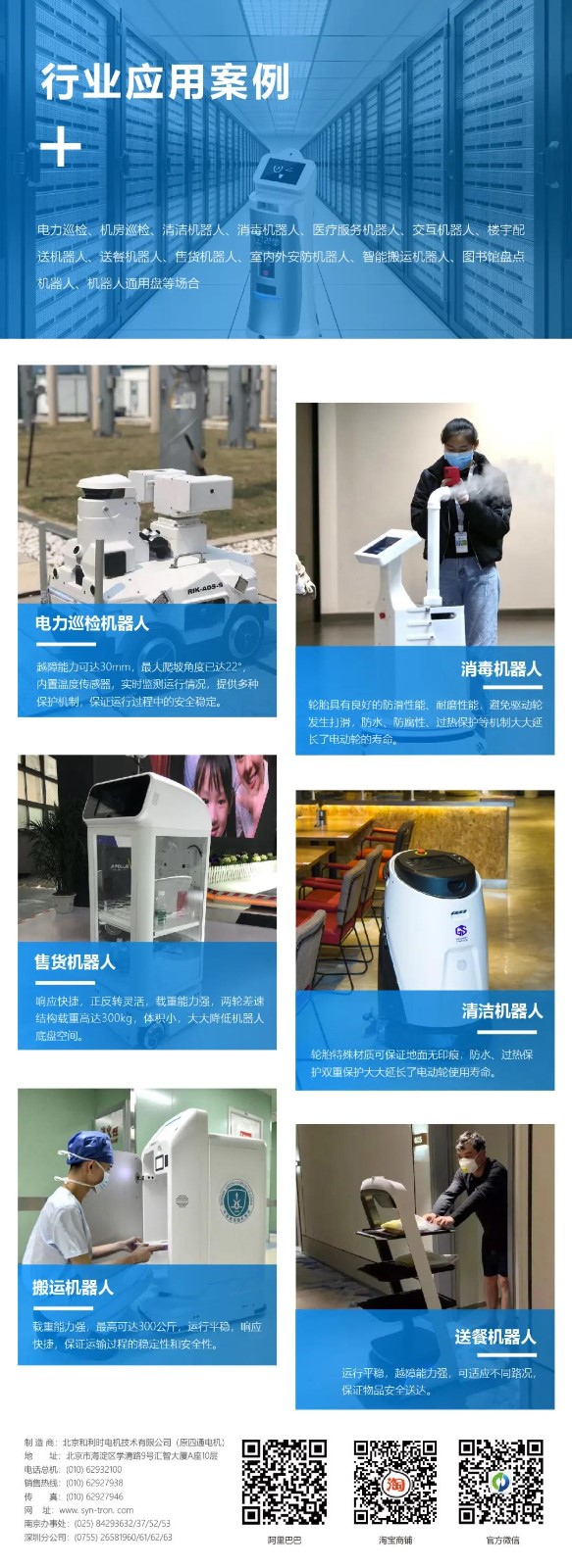 近幾年,北京和利時電機公司推出的行業(yè)專用的多系列伺服電動輪系統(tǒng)(也稱伺服輪轂),滿足了服務(wù)機器人客戶的各種嚴苛要求,廣泛應(yīng)用于多種商用服務(wù)機器人。