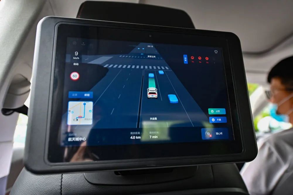 一旁觀看的記者也忍不住躍躍欲試,進(jìn)入“無人車”進(jìn)行試乘體驗(yàn)?!氨敬涡谐探K點(diǎn)是航天科技成果轉(zhuǎn)化基地,全程5.8公里,預(yù)計(jì)用時11分鐘。”記者按領(lǐng)航員提示點(diǎn)擊汽車后排觸摸屏上的“開始行程”,進(jìn)度條達(dá)到100%時車輛起步。